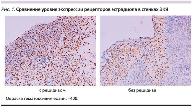 Цель данного исследования заключалась в оценке ИГХ-метода определения экспрессии стероидных гормонов и пролиферационного фактора Ki-67 в стенках первичных и рецидивирующих ЭКЯ для выявления прогностических маркеров рецидива после операционного вмешательства.