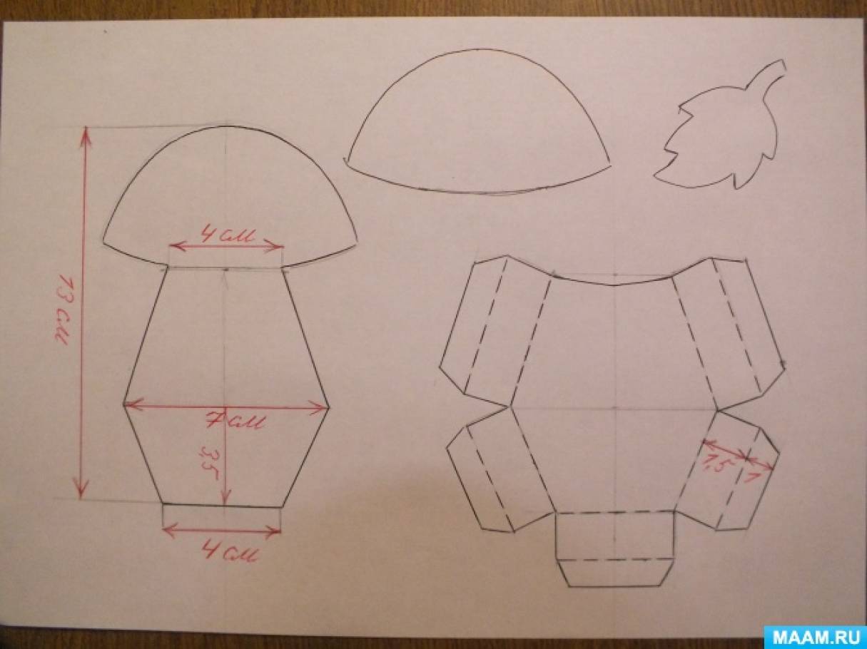 2) Создать эскиз конструкции. Определите размеры шляпки гриба по желанию. Изготовьте шаблоны из плотного картона.