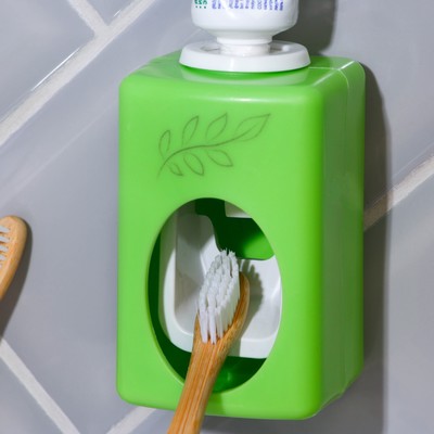 Держатель для щеток бывает как отдельным элементом, так и встроенным в сам диспенсер. В некоторых моделях поставляется комплектующее — тюбик со средством для чистки зубов.