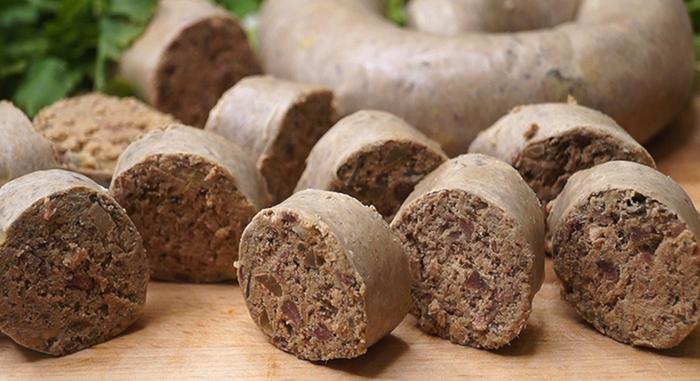 - Третья категория. Приготавливается из вымени, брыжейки, ушей, диафрагмы и других субпродуктов, где легкие заменяют печень, а для связывания добавляют различные крупы и крахмал.
