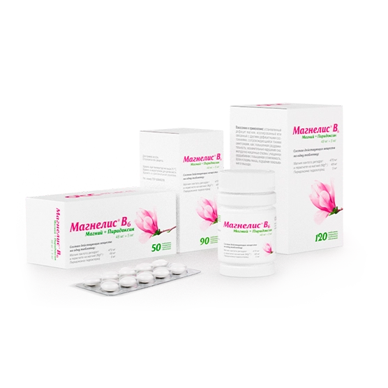 Комбинированный препарат, содержащий терапевтические дозы магния лактата и пиридоксина гидрохлорида, который улучшает усвоение магния в кишечнике, его транспортировка из крови и межклеточной жидкости в клетки.